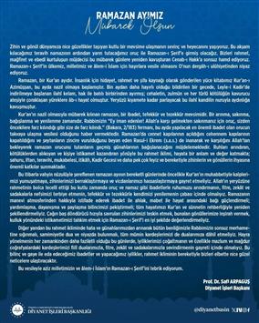 DİYANET İŞLERİ BAŞKANIMIZ PROF. DR. SAFİ ARPAGUŞ'UN RAMAZAN AYI MESAJI