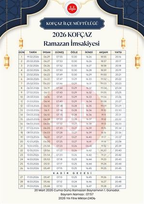 2026 KOFÇAZ RAMAZAN İMSAKİYE