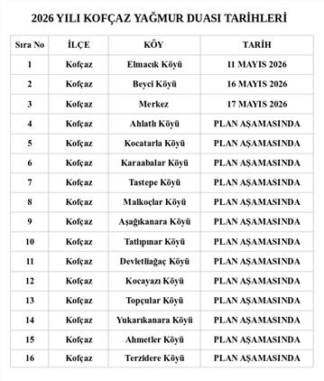 2026 YILI KOFÇAZ YAĞMUR DUASI TARİHLERİ