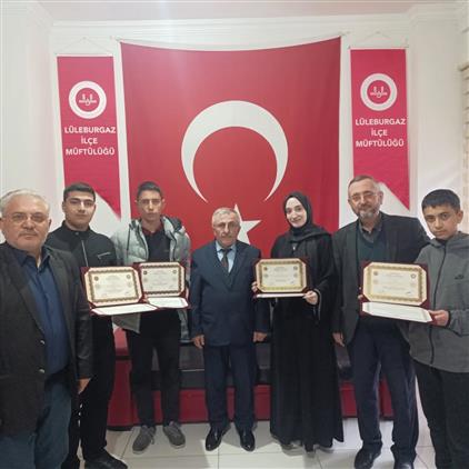 Programda ayrıca, öğrencilerden Bünyamin Kıvanç Bozaykut’un hocası Sokullu Mehmet Paşa Camii görevlisi İsmail Semiz, Abdullah Ahmet Gökkuş ve Yusuf İslam Kaçar’ın hocası Hafızlık Kur'an kursu öğreticisi Şakir Yılmaz da hazır bulundu. İsmail Semiz'in hafızlik sınavında başarılı olan kızı Rüveyda Semiz’e de icazet belgesi İlçe Müftüsü Demir tarafından takdim edildi.